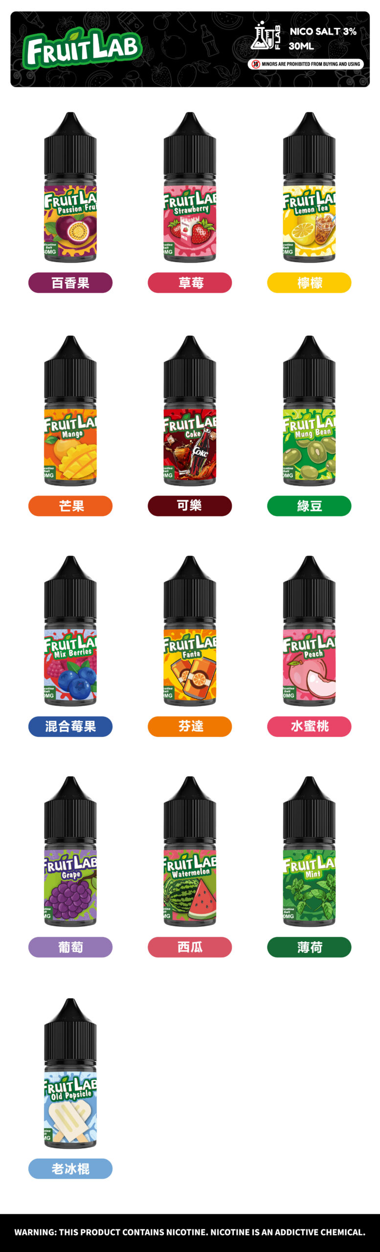 • 水果实验室 FruitLab 40mg/30ml 尼古丁盐烟油 全口味介绍