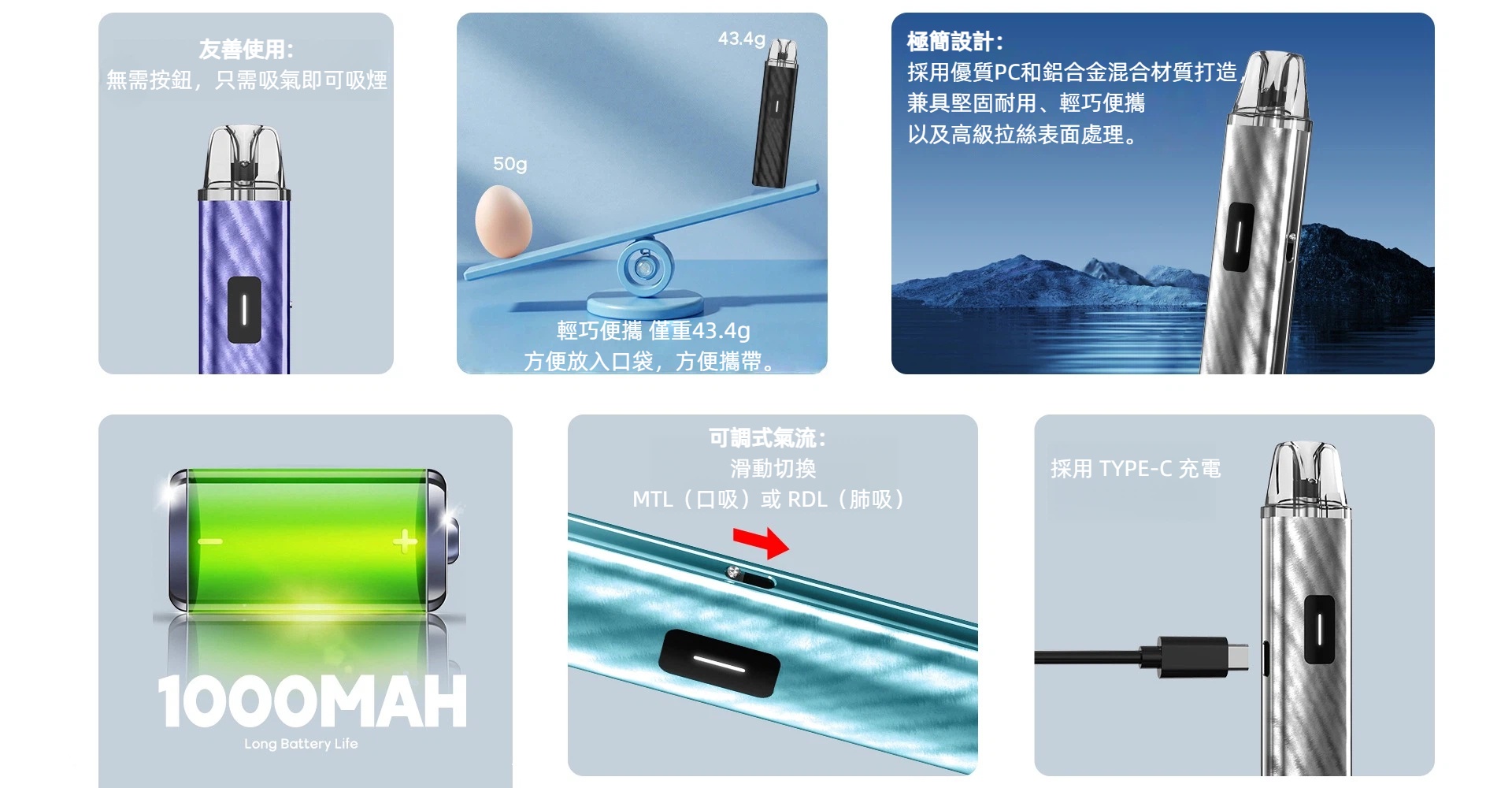 - 支援 MTL 與微 RDL,吸感自然不悶、不費力