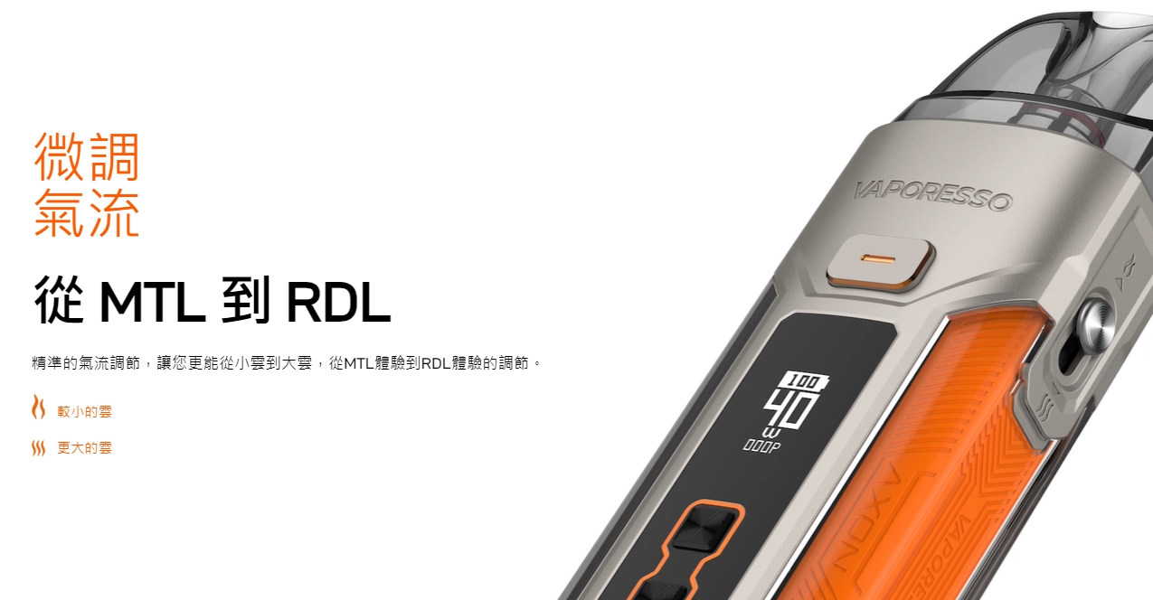 代表機型如 LUXE、TARGET、XROS 系列,結合獨家 AXON 晶片技術,提供穩定輸出、智能功率控制與極快點火反應。Vaporesso 同時在霧化結構設計上不斷創新,推出 SSS 防漏結構與 COREX 高還原加熱核心,全面優化口感表現與使用體驗。