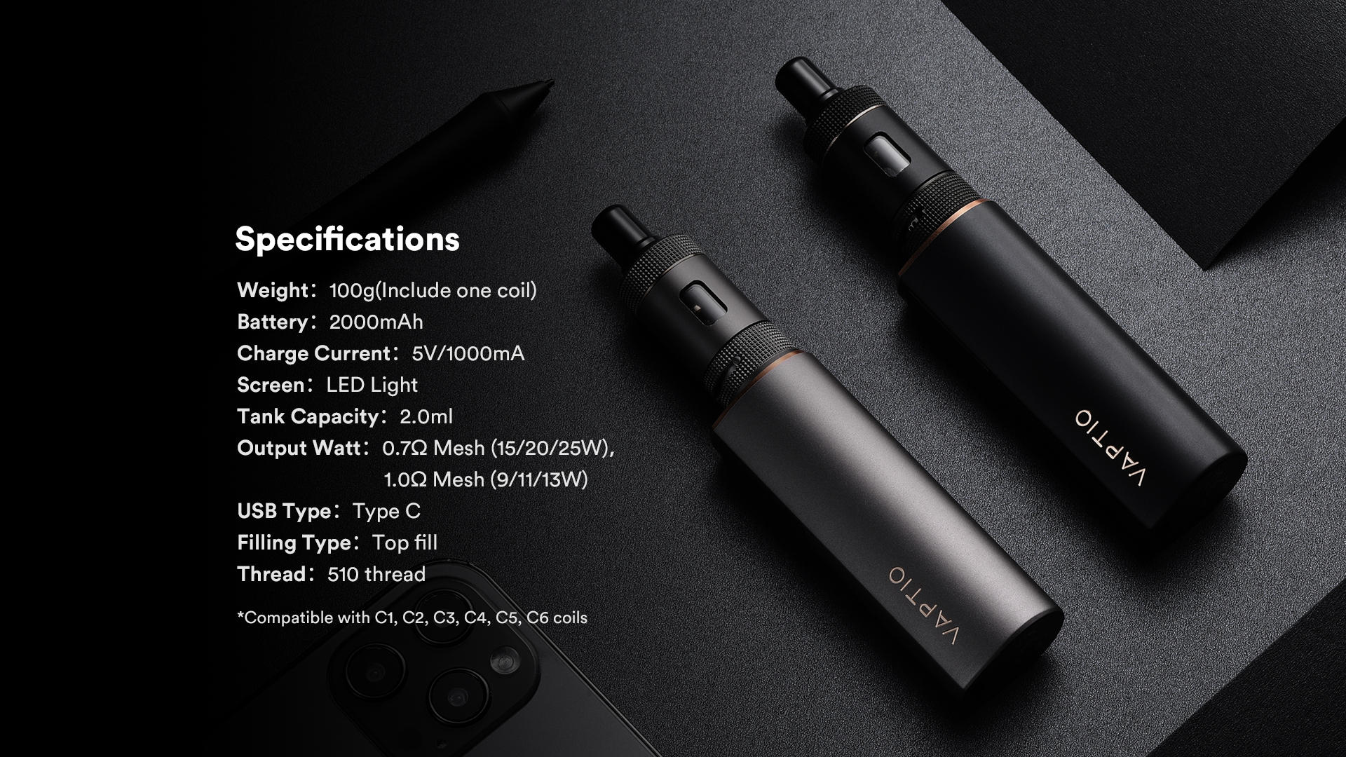 Vaptio 是來自美國西雅圖的創新電子煙品牌,自創立以來便致力於打造「高品質、高顏值、平易近人」的霧化設備。無論是外型時尚的注油式小煙,還是功能齊全的多段調節機型,Vaptio 都成功結合科技設計與實用功能,為全球用戶提供穩定可靠的替煙體驗。