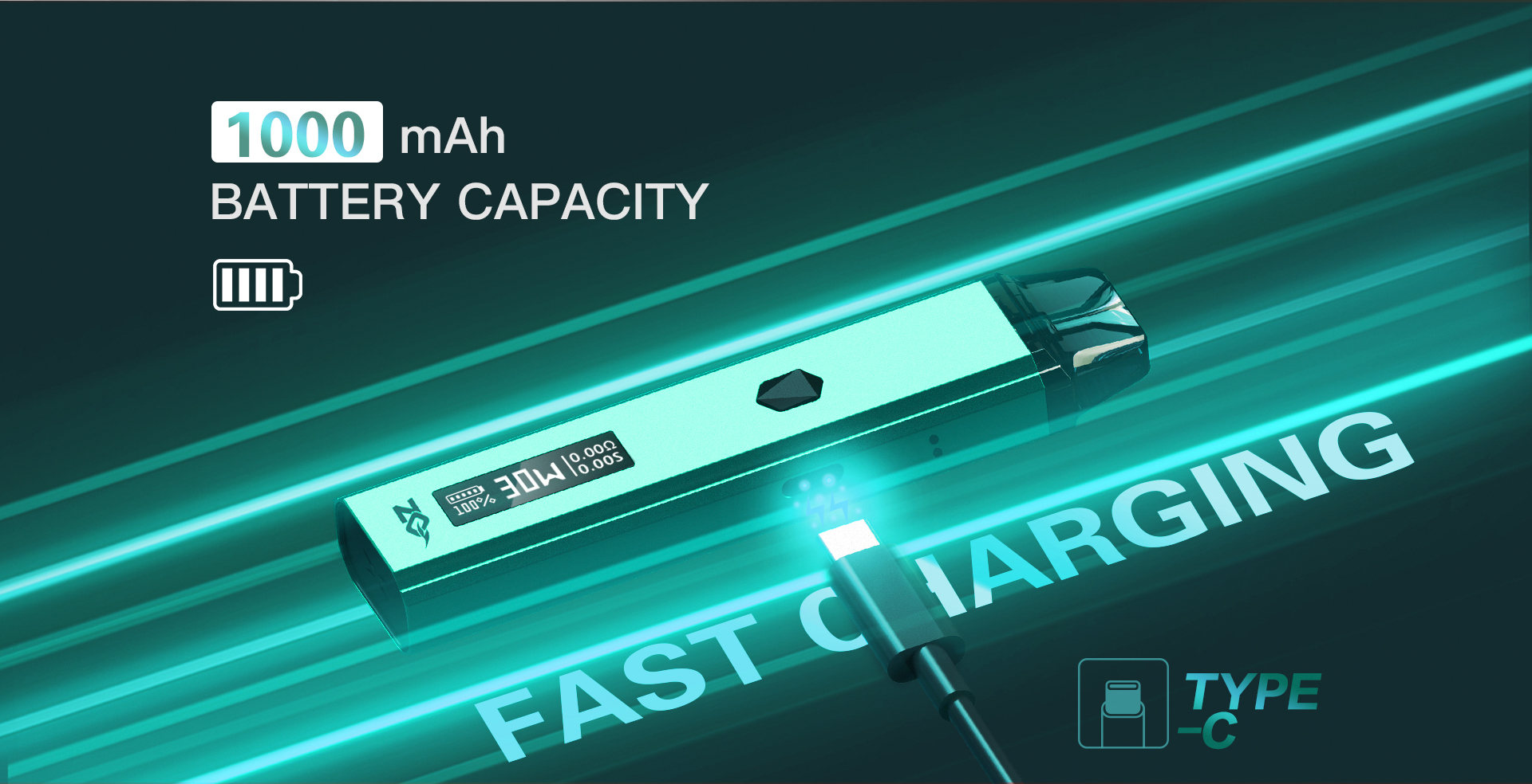 配備可充電的內建1000mAh電池,提供全天長時間吸煙所需的電量。